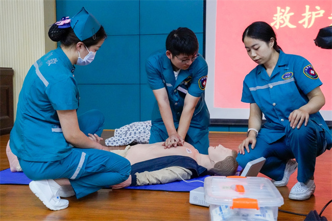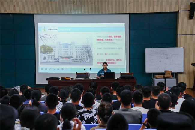 中新河南網(wǎng)9月14日電(范艷武) 為普及急救知識(shí),增強(qiáng)學(xué)生軍訓(xùn)教官的安全防范意識(shí),提高應(yīng)對(duì)突發(fā)事件和意外傷害的救助能力,更好地保障學(xué)生軍訓(xùn)教官以及參訓(xùn)學(xué)生的生命安全和身體健康,9月11日下午,鄭州電力高等?茖W(xué)校武裝部聯(lián)合后勤服務(wù)中心邀請(qǐng)河南電力醫(yī)院急救中心醫(yī)生來(lái)校,在教學(xué)樓二區(qū)101室為全體2023級(jí)新生軍訓(xùn)教官開展了醫(yī)療救護(hù)知識(shí)培訓(xùn)。