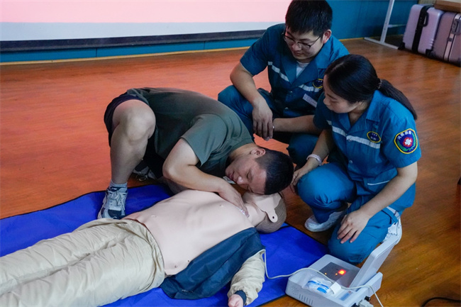 在互動(dòng)環(huán)節(jié)中,教官們都積極參與體驗(yàn)心肺復(fù)蘇的按壓手法、按壓頻率、按壓深度等實(shí)踐操作。每個(gè)動(dòng)作、每個(gè)步驟,教官們都認(rèn)真觀察、力度到位、熟練掌握并積極回答課上提問(wèn),極大地提高了實(shí)踐能力。