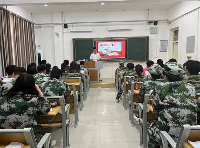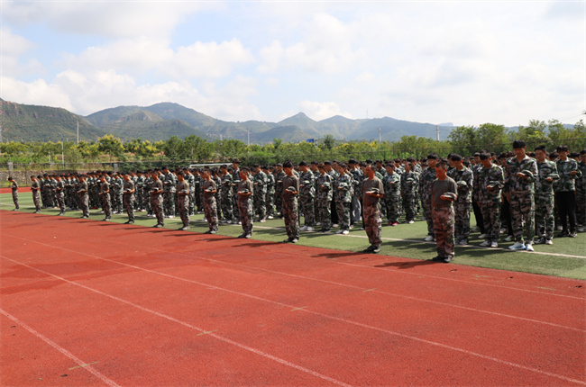 在軍訓(xùn)現(xiàn)場,教官講解“九一八”事變的影響,隨著防空警報響起,現(xiàn)場集體默哀三分鐘,致敬先烈,不忘歷史!