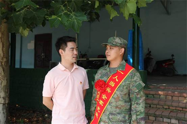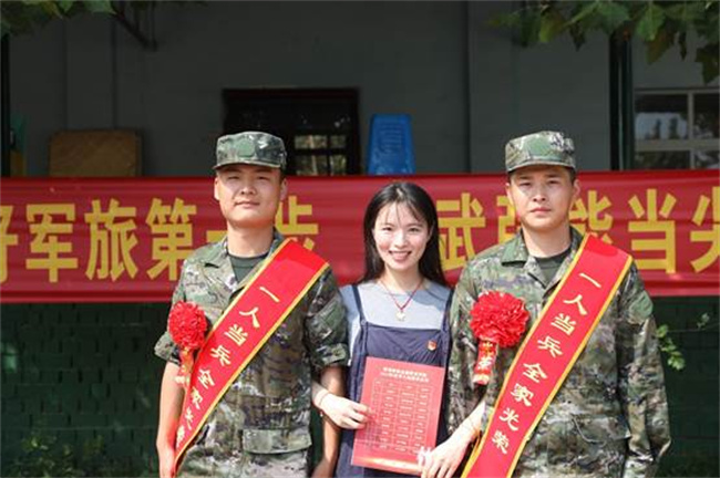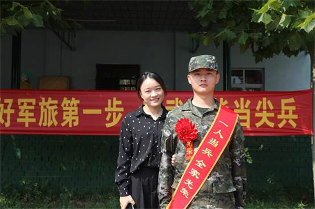 輔導(dǎo)員與入伍新兵合影