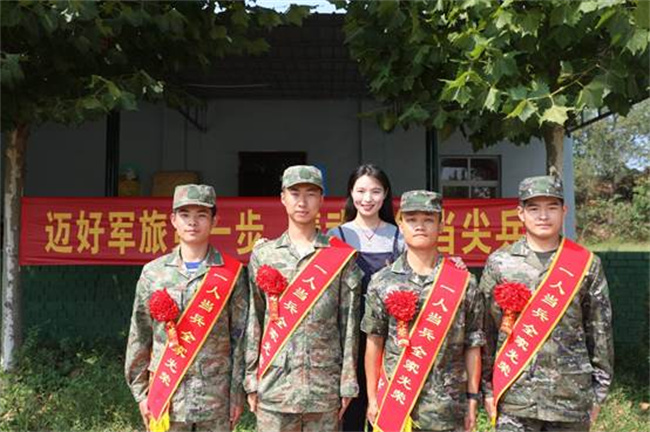 學(xué)院武裝干事與入伍新兵合影