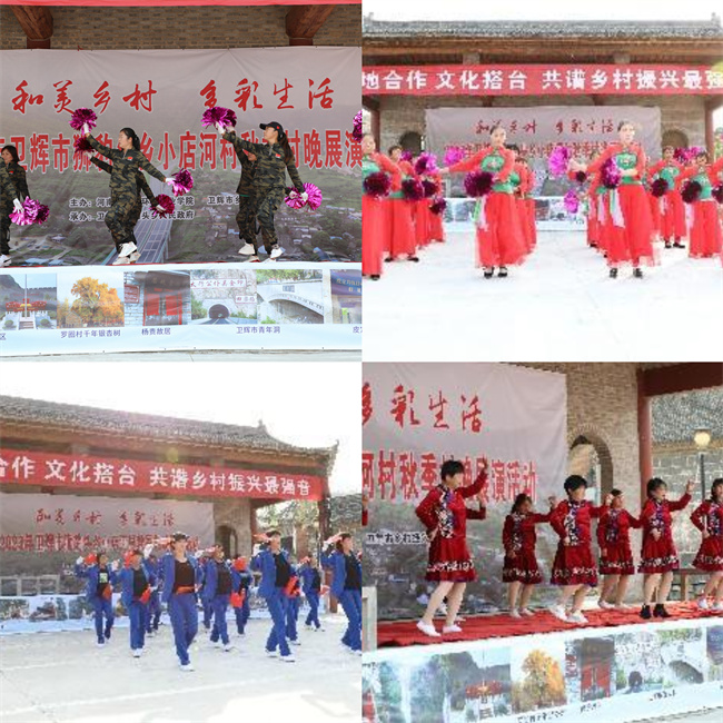 衛(wèi)輝市獅豹頭鄉(xiāng)小店河村、砂掌村、后龍臥村、羅圈村、前龍臥村、白寺村等文藝團隊相繼表演了舞蹈《開門紅》、廣場舞《祝福祖國》《五星紅旗迎風(fēng)飄揚》《喜樂年華》《中國紅》《中國美》《多少次想起你》《今天是你的生日我的中國》、腰鼓《火火的中國、火火的時代》、手花舞《紅歌聯(lián)唱》、戲曲《王山要飯》等節(jié)目。