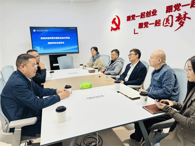 張豐處長(zhǎng)對(duì)郭強(qiáng)處長(zhǎng)一行的到來(lái)表示歡迎,張?zhí)庨L(zhǎng)介紹了學(xué)校創(chuàng)新創(chuàng)業(yè)教育工作的總體概況以及近年來(lái)在創(chuàng)新創(chuàng)業(yè)教育、載體建設(shè)、互聯(lián)網(wǎng)+大賽等方面取得的成績(jī)。郭處長(zhǎng)講話并表示,鄭州電力高等?茖W(xué)校與河南交通職業(yè)技術(shù)學(xué)院同屬河南特色鮮明的職業(yè)院校,雙方在人才培養(yǎng)、專業(yè)發(fā)展、產(chǎn)教融合和師資共享等方面有著深厚的合作潛力,希望雙方以調(diào)研為契機(jī),在創(chuàng)新創(chuàng)業(yè)教育、高技能創(chuàng)新型人才培養(yǎng)等方面取長(zhǎng)補(bǔ)短、攜手共進(jìn),共同為現(xiàn)代化河南建設(shè)新篇章貢獻(xiàn)職教力量。