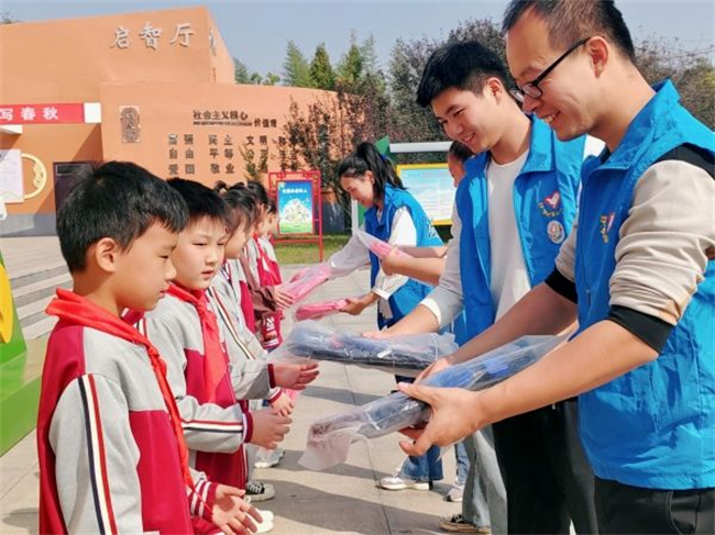 最后,參與活動(dòng)的志愿者一起給貧困生捐助了學(xué)習(xí)用品。