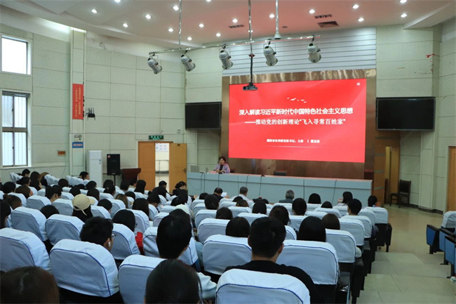 中新河南網(wǎng)11月3日 為深入開(kāi)展學(xué)習(xí)貫徹習(xí)近平新時(shí)代中國(guó)特色社會(huì)主義思想主題教育,持續(xù)推動(dòng)黨的創(chuàng)新理論往深里走、往心里走、往實(shí)里走,根據(jù)市委統(tǒng)一安排,10月30日下午,濮陽(yáng)市政協(xié)常委、社科聯(lián)黨組書(shū)記、主席董玉清應(yīng)邀到濮陽(yáng)職業(yè)技術(shù)學(xué)院開(kāi)展題為《深入解讀習(xí)近平新時(shí)代中國(guó)特色社會(huì)主義思想——推動(dòng)黨的創(chuàng)新理論“飛入尋常百姓家”》的專(zhuān)題宣講。宣講會(huì)在行政樓一樓報(bào)告廳舉行,黨委副書(shū)記宋富勤主持。2000余名師生在線上線下同時(shí)聆聽(tīng)了專(zhuān)題宣講。