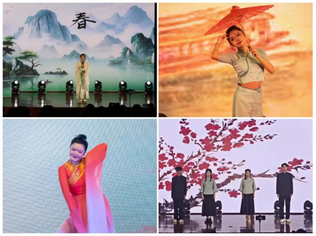 “淺吟清唱頌古韻,悠悠詩情明我心”。在古詩朗誦《懷川詩韻》中,我們與先賢對話,感受懷川詩人的悠悠文墨;在情景劇《長安三萬里》中,我們仿佛身處大唐,領(lǐng)略長安盛世風(fēng)華。“弘揚(yáng)先烈精神,賡續(xù)紅色血脈”。舞蹈《紅船》以意象性的動(dòng)作語言傳遞著偉大的紅船精神,給人以深刻的啟迪;朗誦《太行八英》聲情并茂地講述了共產(chǎn)黨人抗戰(zhàn)時(shí)期英勇斗爭的事跡。“山河披錦繡,盛世寫華章”。一首《有我》,唱出青春的旋律,彰顯青年的力量;教師合誦《信仰》,共同吹響了新時(shí)代的號角,高舉奮斗的旗幟。