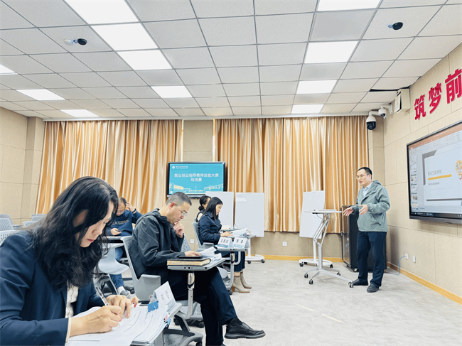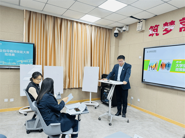 本次比賽重點(diǎn)考察教師教學(xué)設(shè)計(jì)、教學(xué)組織、教學(xué)特色和教學(xué)效果,通過“教學(xué)大綱和教學(xué)設(shè)計(jì)、說課、模擬授課、專家提問”幾個(gè)部分對(duì)選手進(jìn)行綜合考評(píng)。比賽過程中,參賽教師以設(shè)計(jì)豐富的教學(xué)內(nèi)容、多樣的教學(xué)形式,展示了出色的專業(yè)技能和扎實(shí)的教學(xué)基本功,彰顯了學(xué)校就業(yè)創(chuàng)業(yè)指導(dǎo)教師的教育教學(xué)水平。評(píng)委們秉持公平公正的原則,通過課堂教學(xué)理念、組織、實(shí)施與效果等對(duì)參賽教師教學(xué)能力和水平進(jìn)行了綜合評(píng)價(jià)。