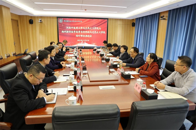 鄭州澍青醫(yī)學高等專科學校馬克思主義學院院長胡彬匯報了自2021年12月簽訂結(jié)對幫扶協(xié)議以來,本校馬克思主義學院建設(shè)取得的一系列突出成果。河南中醫(yī)藥大學馬克思主義學院院長張會萍匯報了今后繼續(xù)推進兩校馬克思主義學院結(jié)對幫扶建設(shè)的工作思路。