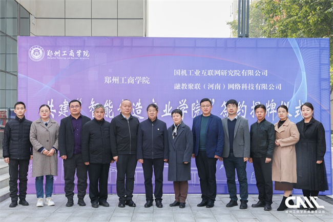 中新河南網(wǎng)11月20日電(程琳 雷向媛)11月15日,鄭州工商學(xué)院與國機工業(yè)互聯(lián)網(wǎng)研究院有限公司和融教聚聯(lián)(河南)網(wǎng)絡(luò)科技有限公司共建智能制造產(chǎn)業(yè)學(xué)院簽約暨揭牌儀式在實訓(xùn)大樓216會議室舉行。國機工業(yè)互聯(lián)網(wǎng)研究院有限公司副總經(jīng)理劉瑩、戰(zhàn)略市場部部長馬盈政、高級解決方案經(jīng)理喬輝,融教聚聯(lián)(河南)網(wǎng)絡(luò)科技有限公司總經(jīng)理張林峰、副總經(jīng)理朱俊鋒、項目規(guī)劃顧問杜林松,鄭州工商學(xué)院校長郭德欣、教務(wù)處處長秦方奇出席儀式,工學(xué)院院長隋繼學(xué)、黨總支副書記張理達、副院長張瑞君及相關(guān)專業(yè)教師代表參加儀式。儀式由副校長褚顏魁主持。