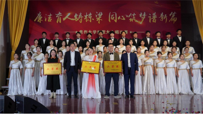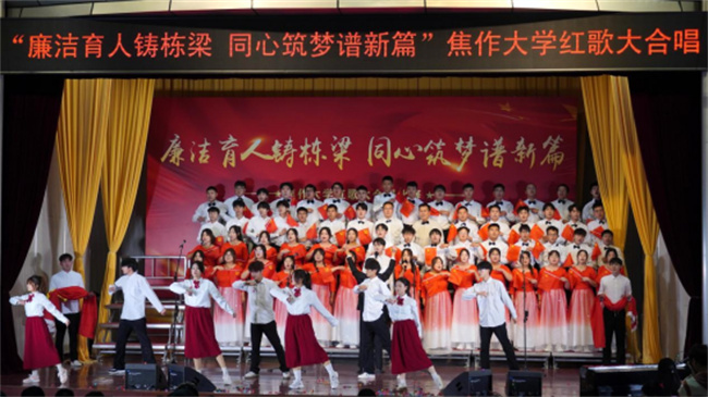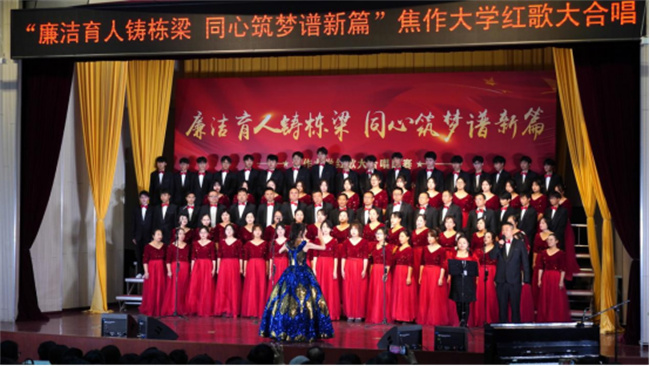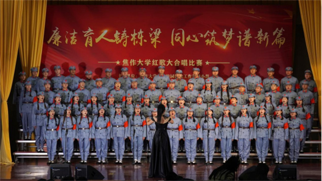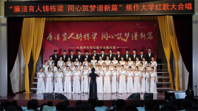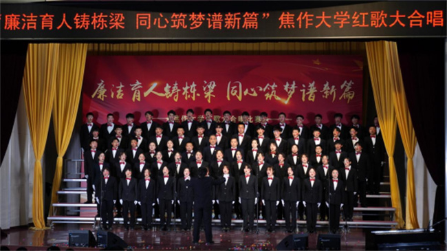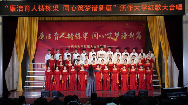 唱響百年輝煌,震撼歌聲中回蕩著昂揚(yáng)拼搏的力量;凝聚奮進(jìn)力量,悠揚(yáng)旋律里飛揚(yáng)著憧憬未來(lái)的希望。焦作大學(xué)師生將從經(jīng)典紅歌中汲取奮進(jìn)力量,緬懷激情燃燒的歲月,進(jìn)一步傳承紅色基因,賡續(xù)精神血脈,堅(jiān)定“不忘初心,牢記使命”的信念,傳承“自強(qiáng)不息,精益求精”的精神,發(fā)揚(yáng)“勤奮嚴(yán)謹(jǐn),務(wù)實(shí)創(chuàng)新”的校風(fēng),力行“崇學(xué)篤行,敬業(yè)樂(lè)群”的校訓(xùn),不斷書(shū)寫(xiě)焦作大學(xué)高質(zhì)量發(fā)展的嶄新篇章,創(chuàng)造更多成就和輝煌。(焦作大學(xué)供稿)