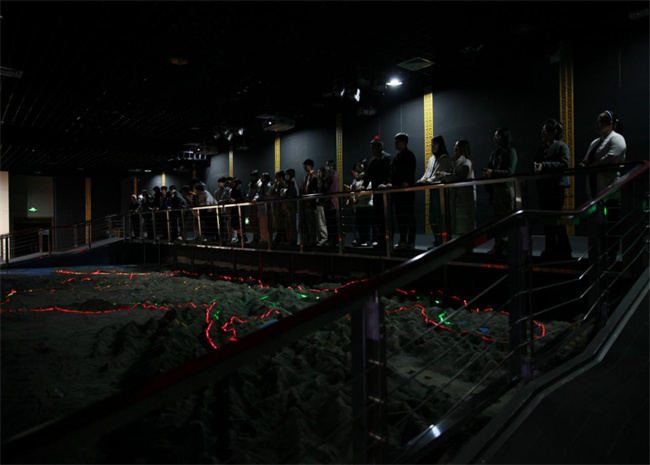 場(chǎng)館里,在巨大的黃河流域沙盤(pán)模型前,“幾”字形的黃河貫穿中原大地的景象瞬間映入大家的眼簾,它如同騰飛的巨龍,展示著蜿蜒、雄偉和壯觀;如同時(shí)光機(jī),記載著華夏五千年的文明和奮斗史詩(shī);如同母親,滋養(yǎng)著中華大地、哺育著中華兒女。大家通過(guò)觀看歷史文獻(xiàn)、文物標(biāo)本和有關(guān)圖文,依次參觀了流域地理、民族搖籃、千秋治河、治河新篇、和諧之路五大展區(qū),多角度、全方位地了解黃河流域的自然概況、文化內(nèi)涵和水資源開(kāi)發(fā)利用等,強(qiáng)烈感受著我們黨治理黃河的豐功偉績(jī),仔細(xì)品味和體會(huì)中華民族在治理黃河過(guò)程中展現(xiàn)的自強(qiáng)不息、頑強(qiáng)拼搏的奮斗精神。