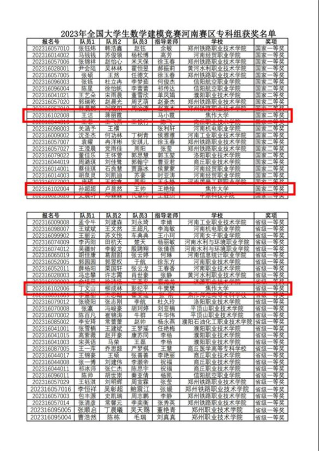 焦作大學(xué)在2023年“高教社杯”全國(guó)大學(xué)生數(shù)學(xué)建模競(jìng)賽中再創(chuàng)佳績(jī)