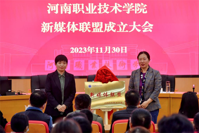 會議宣布了《河南職業(yè)技術(shù)學(xué)院新媒體聯(lián)盟理事長單位、理事單位名單》;表決通過了《河南職業(yè)技術(shù)學(xué)院新媒體聯(lián)盟章程(審議稿)》;田華、楊曉謎為學(xué)校新媒體聯(lián)盟揭牌并分別為聯(lián)盟成員單位授牌;校團委和智慧健康學(xué)院新媒體指導(dǎo)老師分別作經(jīng)驗交流發(fā)言。