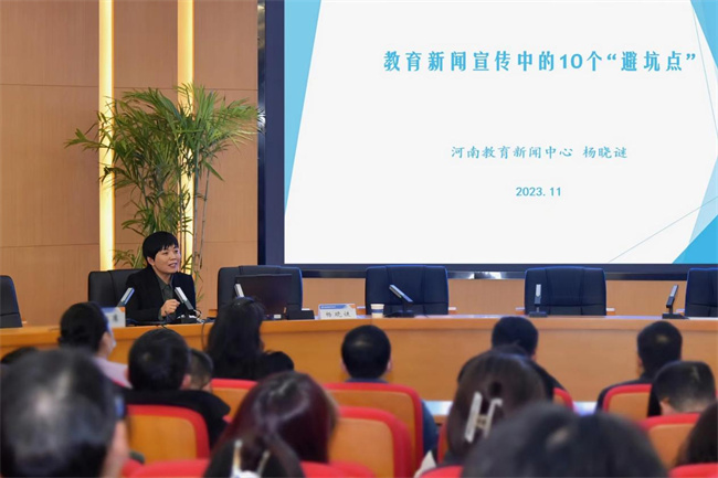 隨后,楊曉謎作了題為《教育新聞宣傳中的10個“避坑點”》的專題講座,她結(jié)合多年新聞宣傳工作經(jīng)驗,分別從新聞中的規(guī)范性表述、新聞報道注意事項、新聞細節(jié)校對和新聞圖片審核等十個方面,對日常新聞宣傳工作中應(yīng)注意的問題進行了詳細講解。報告既有理論高度,又有思想維度,更有實踐深度,也有很強的現(xiàn)實針對性和指導(dǎo)性,為學(xué)校更好地做好新時期宣傳思想工作,提供了根本遵循、指明了科學(xué)路徑、提供了行動指南。