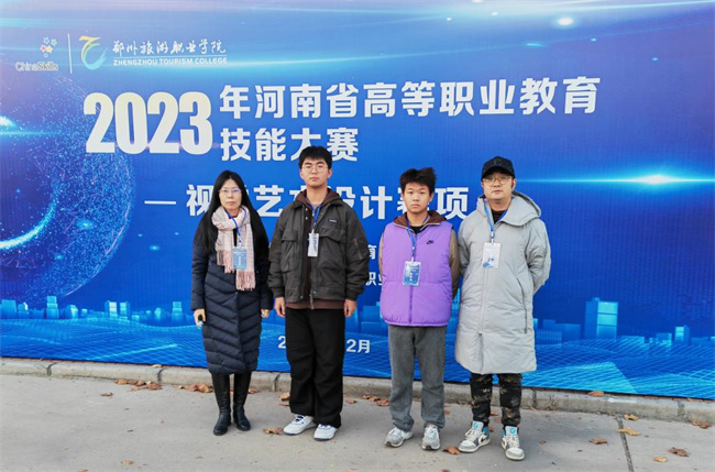中新河南網(wǎng)12月8日電(王兆陽) 日前,2023年河南省高等職業(yè)教育技能大賽“視覺藝術(shù)設(shè)計(jì)”賽項(xiàng)在鄭州旅游職業(yè)學(xué)院舉辦。河南職業(yè)技術(shù)學(xué)院數(shù)字創(chuàng)意與設(shè)計(jì)學(xué)院王兆陽、張若暉老師指導(dǎo)的馬云濤、陳延照兩位同學(xué),憑借扎實(shí)的技能與豐富的創(chuàng)意,均獲一等獎。