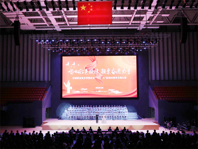 “王屋山下,黃河北岸,我們歡聚在知識的圣殿……”合唱比賽在濟源職業(yè)技術(shù)學(xué)院校歌聲中拉開了帷幕。本次比賽以“唱響紅色旋律 凝聚奮進(jìn)力量”為主題,除了演唱校歌,11支參賽隊伍還演唱了《我和我的祖國》《祖國不會忘記》等歌曲,共同追憶崢嶸歲月,唱響青春贊歌。