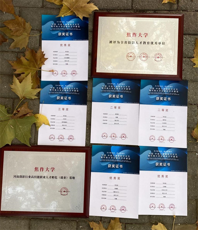 由于成績(jī)突出,焦作大學(xué)獲得了"全省攝影教育優(yōu)秀單位"、"河南攝影行業(yè)高技能職業(yè)人才孵化(就業(yè))基地"等榮譽(yù)。在眾多高校中,該校也是為數(shù)不多獲得此等榮譽(yù)的專(zhuān)科院校。