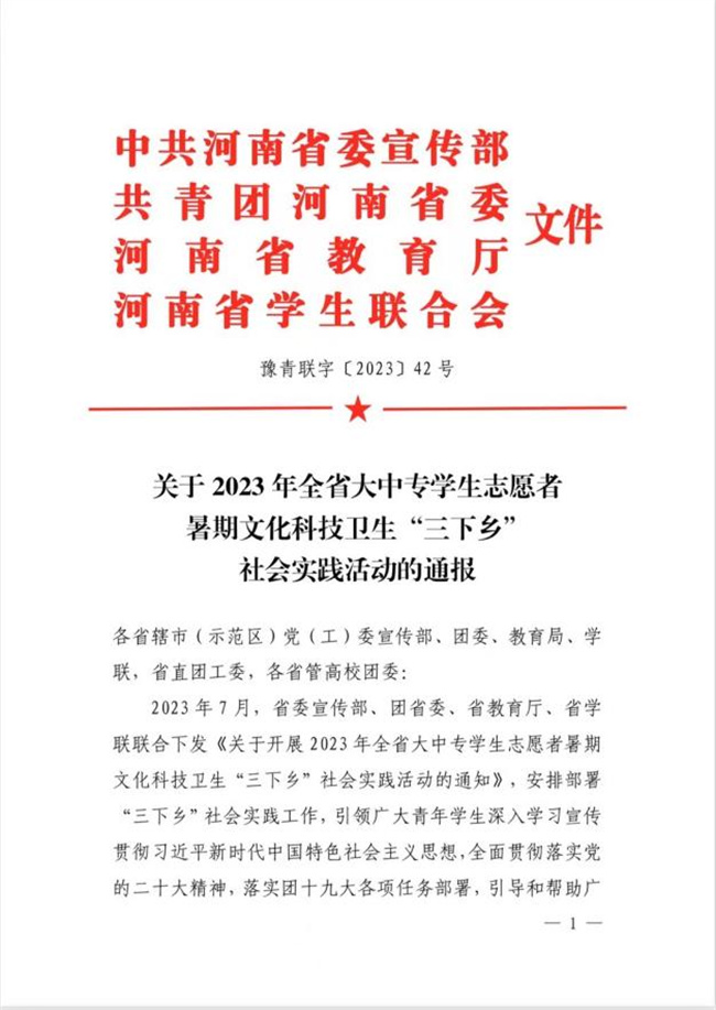 河南交通職業(yè)技術(shù)學(xué)院暑期“三下鄉(xiāng)”社會實(shí)踐活動中獲表彰