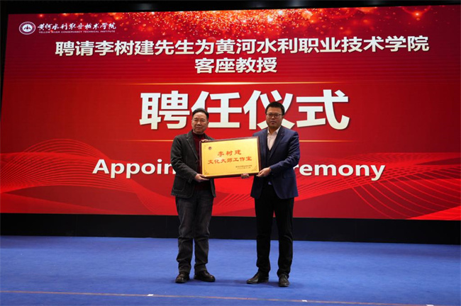 胡昊為李樹建頒發(fā)客座教授聘書,并為“李樹建文化大師工作室”授牌。