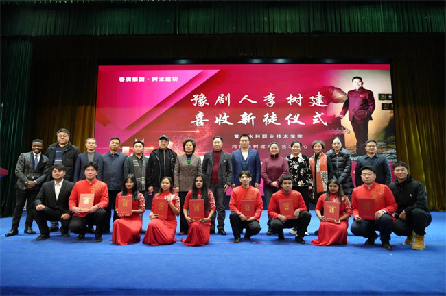 李樹建致辭。他指出,沒有中華文化的繁榮,就沒有中華民族的偉大復興,而文藝是吹響時代前進的號角。留學生拜師本質上是對中國優(yōu)秀傳統(tǒng)文化的崇拜,作為文藝創(chuàng)作者、傳統(tǒng)文化傳承者,將不負厚望,帶領留學生開發(fā)豫劇資源,向世界傳遞中國聲音、講好中國故事,為展現中國優(yōu)秀的傳統(tǒng)文化盡心盡力、盡職盡責、盡情盡意,培養(yǎng)更多胸中有大義、心里有人民、肩頭有責任、筆下有乾坤的戲劇人。