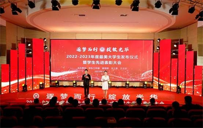 此次活動(dòng)以“逐夢(mèng)而行 綻放光華”為主題,開場(chǎng)題為《砥礪奮發(fā)有為 花開大美學(xué)工》的短片,集中展現(xiàn)了2023年鄭州電力高等?茖W(xué)校學(xué)生工作領(lǐng)域取得的一系列來之不易的成績(jī);顒(dòng)現(xiàn)場(chǎng)公布了鄭州電力高等專科學(xué)校2022-2023學(xué)年學(xué)生先進(jìn)集體和先進(jìn)個(gè)人表彰文件,鄭州電力高等專科學(xué)校領(lǐng)導(dǎo)為先進(jìn)集體和先進(jìn)個(gè)人代表頒獎(jiǎng)。在最美大學(xué)生獲得者發(fā)布儀式上,以“勵(lì)·篤學(xué)”“創(chuàng)·奮斗”和“志·擔(dān)當(dāng)”為主題的三個(gè)篇章,依次呈現(xiàn)了學(xué)習(xí)之星李耀祖、范麗佳、文體之星孫宇、創(chuàng)新之星桂浩、魏思淇、金炯炯、自強(qiáng)之星暴志遠(yuǎn)、李東風(fēng)、公益之星心希望青年志愿者服務(wù)隊(duì)等9位最美大學(xué)生的青春風(fēng)采,鄭州電力高等?茖W(xué)校領(lǐng)導(dǎo)分別為最美大學(xué)生頒獎(jiǎng)。