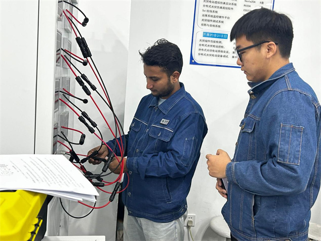 2023年12月25日,鄭州電力高等專科學(xué)校境外辦學(xué)機構(gòu)尼泊爾“中尼電力絲路學(xué)院”2021級電力系統(tǒng)自動化技術(shù)專業(yè)7名學(xué)生和3名教師抵達學(xué)校開展為期10天的專業(yè)技能實習(xí)培訓(xùn)。電力工程學(xué)院為此次培訓(xùn)做出精心組織和安排,根據(jù)課程計劃對“中尼電力絲路學(xué)院”師生開展了“典型客戶配電實訓(xùn)、光伏電站運維實訓(xùn)、智能變電站運維實訓(xùn)、輸配電線路運維實訓(xùn)”四門核心課程的實習(xí)培訓(xùn)。通過此次實習(xí)培訓(xùn)學(xué)生對已學(xué)專業(yè)課程涉及的技能進行了實踐,實踐使學(xué)生身臨其境,置身于工作環(huán)境,將所學(xué)理論知識運用到工作崗位中,為進一步提高職業(yè)崗位能力奠定了基礎(chǔ)。