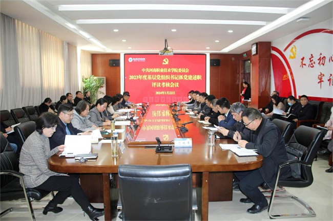 中新河南網(wǎng)1月24日電(黃金磊) 1月22日下午,河南職業(yè)技術(shù)學(xué)院在行政樓332會議室召開2023年度黨組織書記抓基層黨建工作述職評議考核會議。校黨委全體成員,各黨總支書記、副書記,直屬黨支部書記,黨政辦、組織部、宣傳部、紀檢監(jiān)察室、工會、團委、學(xué)工部、人事處等部門負責(zé)同志及各二級學(xué)院黨支部書記代表共55人參加會議。會議由校黨委書記李桂貞主持。
