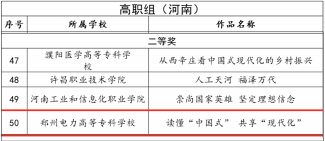 中新河南網(wǎng)2月29日電(黃詩雅) 近日,由教育部高校思政課教學(xué)指導(dǎo)委員會(huì)主辦,南開大學(xué)馬克思主義學(xué)院承辦的“新思想引領(lǐng)新征程·新青年建功新時(shí)代”第七屆全國高校大學(xué)生講思政課公開課展示活動(dòng)公布了評(píng)審結(jié)果,鄭州電力高等?茖W(xué)校馬克思主義學(xué)院創(chuàng)作推送的參賽作品《讀懂“中國式” 共享“現(xiàn)代化”》榮獲二等獎(jiǎng)。