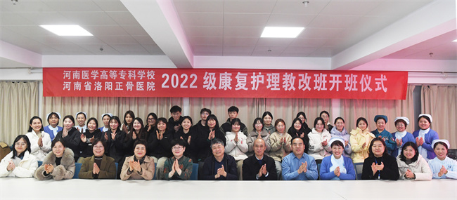 他講到,去年我們?cè)诳偨Y(jié)護(hù)理康復(fù)人才訂單培養(yǎng)經(jīng)驗(yàn)的基礎(chǔ)上,啟動(dòng)實(shí)施現(xiàn)代學(xué)徒制人才培養(yǎng)模式,全面落實(shí)“雙元”育人,著力培養(yǎng)學(xué)生的職業(yè)精神、專業(yè)技能、創(chuàng)新創(chuàng)業(yè)能力,促進(jìn)學(xué)生全面發(fā)展,進(jìn)一步提升了產(chǎn)教深度融合的育人格局。他建議,校院雙方聯(lián)合成立試點(diǎn)班教師教學(xué)創(chuàng)新團(tuán)隊(duì),總結(jié)16年來聯(lián)合開展護(hù)理康復(fù)人才培養(yǎng)經(jīng)驗(yàn),探討中醫(yī)適宜技術(shù)賦能護(hù)理人才培養(yǎng)的路徑和方案,推動(dòng)護(hù)理康復(fù)人才向養(yǎng)老產(chǎn)業(yè)轉(zhuǎn)型發(fā)展。他希望試點(diǎn)班的全體學(xué)員,一是要用心體會(huì)。學(xué)校和醫(yī)院為了同學(xué)們的成長成才,投入了大量的人力和物力,同學(xué)們要用心體會(huì)學(xué)校和醫(yī)院的良苦用心,從思想上重視,倍加珍惜來之不易的學(xué)習(xí)提升機(jī)會(huì),努力完成各項(xiàng)學(xué)習(xí)任務(wù)。二是要用心感受。洛陽正骨醫(yī)院始于平樂郭氏正骨的“洛陽正骨”,創(chuàng)立于清朝乾隆年間,距今已有220多年歷史。河南省洛陽正骨醫(yī)院用220多年的文化脈絡(luò)傳承、56年的現(xiàn)代化中醫(yī)?漆t(yī)院建設(shè),打造出“洛陽正骨”品牌,請(qǐng)同學(xué)們?cè)跇I(yè)余時(shí)間學(xué)習(xí)醫(yī)院發(fā)展歷史,感受洛陽正骨文化,盡快融入環(huán)境,接受熏陶。三是要健康成長。同學(xué)們要珍惜每一次聽課、見習(xí)的機(jī)會(huì),努力做到多思考、多提問、多學(xué)習(xí)、多實(shí)踐、多總結(jié),在實(shí)踐中培養(yǎng)自己的協(xié)作、溝通、創(chuàng)新能力,在知識(shí)和技能上全面提升,在心理上盡快成熟成長。
