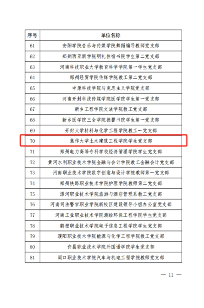 土木建筑工程學(xué)院學(xué)生黨支部是繼經(jīng)濟(jì)管理學(xué)院教工黨支部、機(jī)電工程學(xué)院教工黨支部和會(huì)計(jì)學(xué)院教工黨支部之后,是該校獲得的第四個(gè)“省級(jí)樣板黨支部”。校黨委將繼續(xù)推進(jìn)黨建與業(yè)務(wù)的深度融合,圍繞學(xué)校中心工作抓黨建,以高質(zhì)量黨建引領(lǐng)學(xué)校各項(xiàng)事業(yè)高質(zhì)量發(fā)展。(焦作大學(xué)供稿)