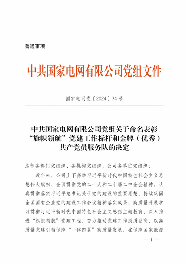 中新河南網3月28日電(彭佳偉) 近日,中共國家電網有限公司黨組發(fā)布關于命名表彰“旗幟領航”黨建工作標桿和金牌(優(yōu)秀)共產黨員服務隊的決定,鄭州電力高等?茖W校“一核雙強三基四賦能五抓全融”黨建工作責任落實體系成功入選黨建責任落實標桿。