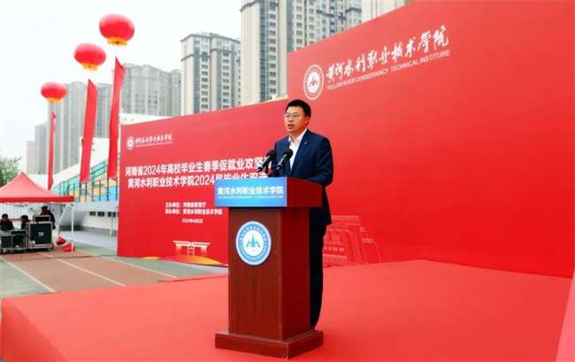 啟動儀式上,胡昊致辭,向前來參加活動的各位領導和招聘企業(yè)表示熱烈歡迎和誠摯謝意,希望通過此次活動推動校企雙方以誠相待、深入交流、精準對接,進一步加強校企合作,搭建供需對接平臺,促進就業(yè)與培養(yǎng)有機聯(lián)動,盡最大力量為學校畢業(yè)生提供更多的就業(yè)機會和更好的發(fā)展平臺。中國水利水電第十一工程局有限公司代表參會企業(yè)表達了對學校人才培養(yǎng)和畢業(yè)生綜合能力的肯定,希望和更多的優(yōu)秀畢業(yè)生達成就業(yè)意向。畢業(yè)生代表、水工建筑2103班李尚梧同學表達了對學校培養(yǎng)的感謝和對招聘活動的期待。