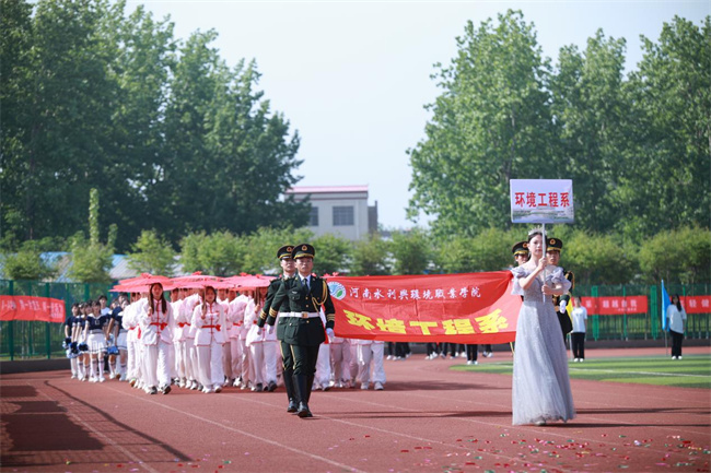 國旗隊、校旗隊、彩旗隊、院系方隊、教職工代表隊