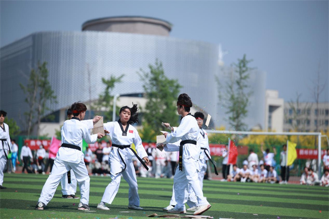 武術太極社和體育教學部共同帶來的武術節(jié)目《劍韻華章》,姿態(tài)優(yōu)雅韻律美,劍光閃爍意無窮。