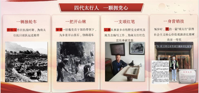 父親指著窗外的青山,滿眼慈愛的對我說:“燦科啊,抗戰(zhàn)時期,你的曾祖父不畏艱辛,為抗戰(zhàn)部隊運送糧草。建國時期,你的爺爺帶領著同鄉(xiāng)用一把把鐵鍬揮汗開山,F在,我也已經研究了大半輩子的南太行歷史,到你這里,爸爸希望你能用最真誠質樸的話講好我們家鄉(xiāng)故事,把家族代代相傳的吃苦奉獻精神傳承好,帶著咱的父老鄉(xiāng)親走向更大的舞臺!”