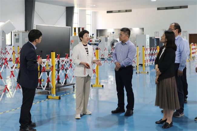 苗樹群一行首先前往220kV智能變電站實訓(xùn)基地、新能源產(chǎn)教融合實訓(xùn)基地、工業(yè)互聯(lián)網(wǎng)產(chǎn)教融合實訓(xùn)基地進行參觀。對學(xué)校220Kv智能變電站實訓(xùn)基地、新能源產(chǎn)教融合實訓(xùn)基地給予高度評價,認為學(xué)校歷史底蘊深厚,電力特色鮮明,產(chǎn)業(yè)與教育和培訓(xùn)結(jié)合緊密、匹配精準,引領(lǐng)了職業(yè)教育數(shù)智化、數(shù)字化、綠色化發(fā)展,產(chǎn)業(yè)學(xué)院構(gòu)建很有示范性,研發(fā)能力強,成果豐厚,極具特色,發(fā)展迅速。