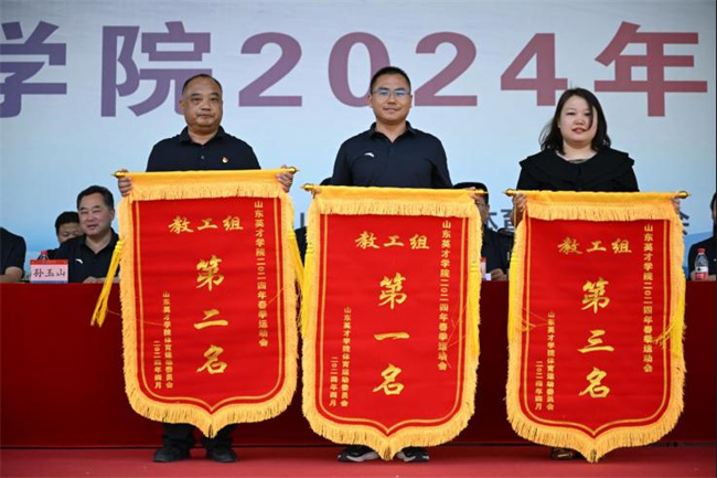 閉幕式上,裁判長宣讀比賽成績。經(jīng)過激烈角逐,音樂舞蹈學院、商學院、工學院獲得學生團體總分前三名;機關一代表隊、山東英才學院高級技工學校、學前教育學院獲得教工團體總分前三名;商學院、學前教育學院、音樂舞蹈學院、工學院獲得2024年春季運動會體育精神文明獎;醫(yī)學院、設計學院、北校區(qū)綜合管理辦公室代表隊、機關2代表隊獲得2024年春季運動會體育道 獎。隨著頒獎音樂響起,各代表團代表依次上臺領獎,他們的臉上洋溢著激動和自豪的笑容。這些獎項不僅是對他們辛勤付出的肯定,更是對他們團隊精神和集體榮譽感的彰顯。