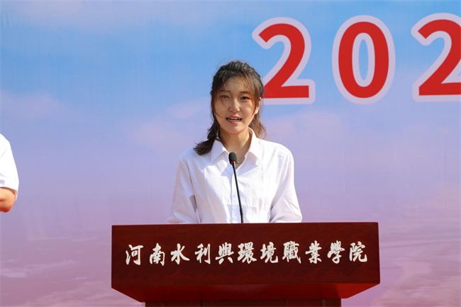 學(xué)生代表環(huán)境工程系2022級(jí)環(huán)境檢測技術(shù)專業(yè)學(xué)生劉甜娜發(fā)言