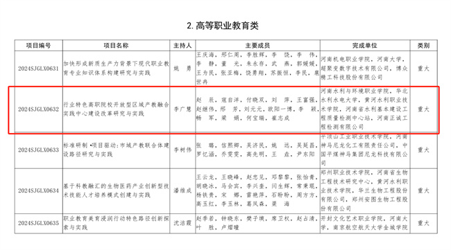 學(xué)校也將以重大項(xiàng)目立項(xiàng)為契機(jī),不斷深化教育教學(xué)改革,創(chuàng)新人才培養(yǎng)模式,積極發(fā)揮示范引領(lǐng)作用,著重凝練形成一批具有影響力的研究成果,為現(xiàn)代職業(yè)教育體制機(jī)制建設(shè)和高質(zhì)量發(fā)展貢獻(xiàn)更多水環(huán)力量。(河南水利與環(huán)境職業(yè)學(xué)院供稿)