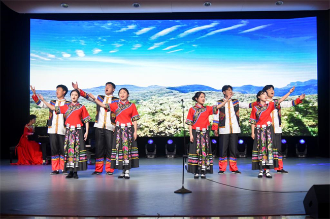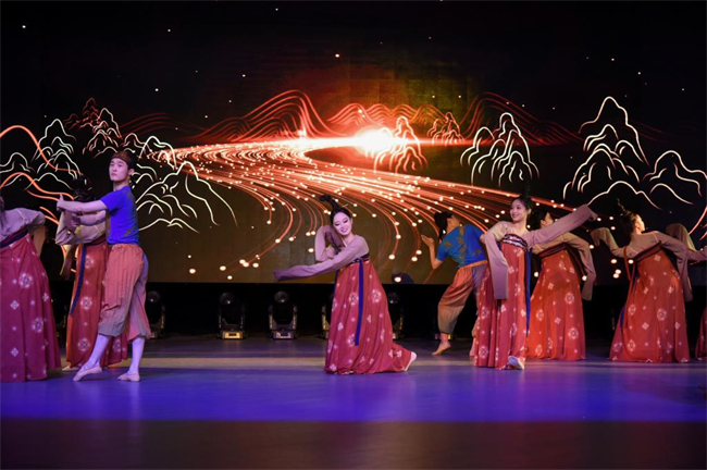 演出在開場樂舞表演中拉開序幕,展現(xiàn)了一幅盛世華夏、天地人和的盛大場面。展演中,聲樂《槐花幾時開》《花兒與少年》《我愛你中國》等作品,師生用歌聲與表演展示了黃河流域地區(qū)的風土人情,歌頌了對祖國的熱愛。器樂《牧民新歌》《復興之路》等作品,動人的琴聲展現(xiàn)了大國的風貌與氣韻。舞蹈《在水一方》《一條大河》等作品,演員用舞蹈語言展示了母親河壯美的畫卷,給觀眾帶來極致的審美體驗、傳遞了豐富的情感價值和精神力量。情景朗誦《千年之約》,一場圣人先賢們的對話與哲思,使現(xiàn)場觀眾洞見了前人的智慧,在古今穿梭中感受厚重的文化內涵。環(huán)保時裝秀《綠裳黃河》別出心裁,用舊物做時裝,在時裝中體現(xiàn)黃河文化精神內涵。