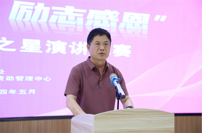 王森指出,“勵(lì)志之星”演講比賽是學(xué)校在學(xué)生資助政策實(shí)施過(guò)程中,持續(xù)開(kāi)展資助育人活動(dòng),進(jìn)一步推動(dòng)“保障型”資助向“發(fā)展型”資助拓展的重要內(nèi)容。旨在切實(shí)發(fā)揮資助工作的育人功能,展現(xiàn)學(xué)校學(xué)生自立自強(qiáng),奮發(fā)成才的蓬勃精神面貌,在廣大學(xué)生中樹(shù)立一批勤奮學(xué)習(xí)、不畏困難、勇于進(jìn)取的先進(jìn)典型,在全校范圍內(nèi)形成開(kāi)拓進(jìn)取、勵(lì)志成才的濃厚文化氛圍和良好的助人育人環(huán)境,構(gòu)建物質(zhì)幫扶、道德浸潤(rùn)、能力拓展、精神激勵(lì)有效融合的資助育人長(zhǎng)效機(jī)制。選手們從不同角度生動(dòng)詮釋了社會(huì)主義核心價(jià)值觀,傳遞自強(qiáng)自立精神,播撒青春正能量,為營(yíng)造健康向上的校園文化和勵(lì)志自強(qiáng)的校園氛圍發(fā)揮了重要作用。希望同學(xué)們能再接再厲,奮勇拼搏,充分利用學(xué)校提供的各類發(fā)展平臺(tái),不斷提升、全面發(fā)展,為人生夢(mèng)想的實(shí)現(xiàn)打下良好基礎(chǔ)。能從“勵(lì)志之星”們的事跡中獲得啟發(fā),培養(yǎng)堅(jiān)定的理想信念、深厚的家國(guó)情懷、強(qiáng)烈的責(zé)任擔(dān)當(dāng),踔厲奮發(fā)、勇毅前行,讓青春在實(shí)現(xiàn)中國(guó)式現(xiàn)代化和中華民族偉大復(fù)興進(jìn)程中綻放絢麗之花。