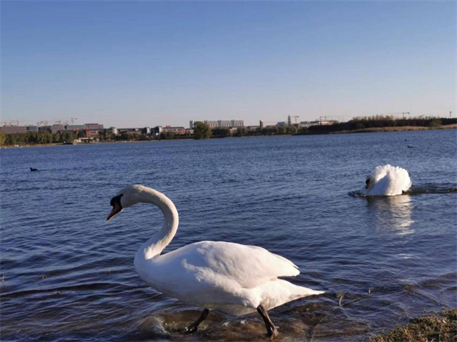 在尋找最美天鵝活動中,師生來到北龍湖疣鼻天鵝觀賞區(qū),仔細觀察疣鼻天鵝的體貌特征和生活習(xí)性,感受野生天鵝的獨特魅力。同學(xué)們紛紛用相機記錄下天鵝的優(yōu)美姿態(tài),現(xiàn)場一派人與自然和諧共生的美好景象。