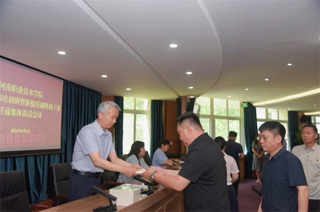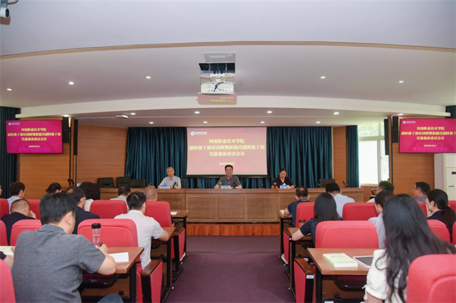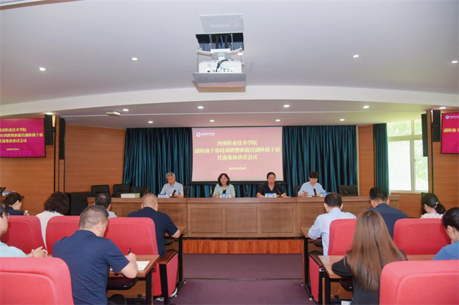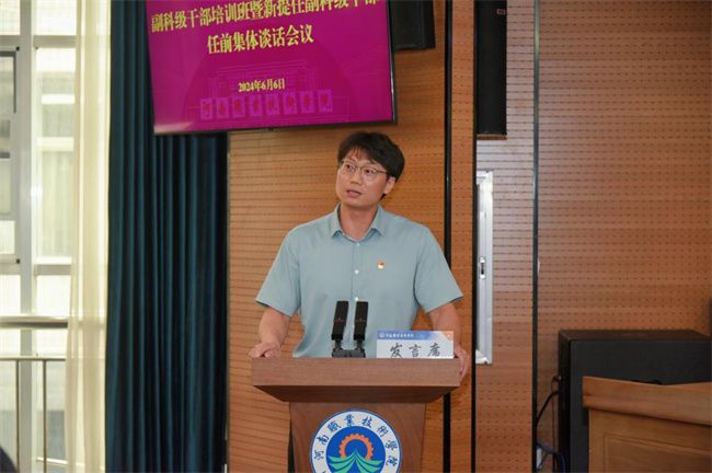 中新河南網(wǎng)6月9日電(黃金磊)6月6日,河南職業(yè)技術(shù)學(xué)院副科級(jí)干部培訓(xùn)班暨新提任副科級(jí)干部任前集體談話會(huì)議在行政樓238會(huì)議室舉行。校黨委書記厲勵(lì)、校長夏新顏、紀(jì)委書記盛興文出席會(huì)議并作講話,全體副科級(jí)干部和組織部全體人員參加會(huì)議。校黨委副書記田華主持會(huì)議并宣讀了副科級(jí)干部任命文件。