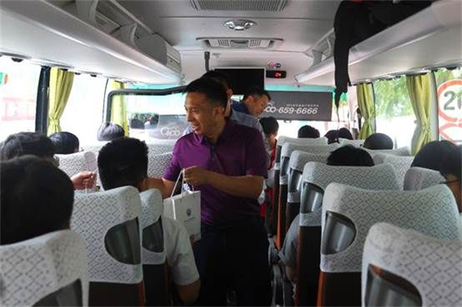 在“愛心專車”上,校長劉全璽與畢業(yè)生親切交流,溫情話別,為畢業(yè)生送上臨別禮物。劉校長祝賀同學(xué)們順利畢業(yè),囑托同學(xué)們;貋砜纯,鼓勵(lì)同學(xué)們在新的起點(diǎn)上踔厲奮發(fā)、篤行不怠,以最好的成績?yōu)槟感T龉馓聿,為國家和社?huì)作出貢獻(xiàn)。