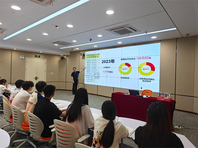 中新河南網(wǎng)6月28日電(谷世飛) 6月27日上午,河南職業(yè)技術(shù)學(xué)院黨委書記厲勵以“爭做新時代有為青年 為民族復(fù)興挺膺擔(dān)當(dāng)”為題,為現(xiàn)代信息技術(shù)學(xué)院移動應(yīng)用開發(fā)231班同學(xué),講了一堂政治上有高度、理論上有深度、情感上有溫度、知識上有廣度的思政課。