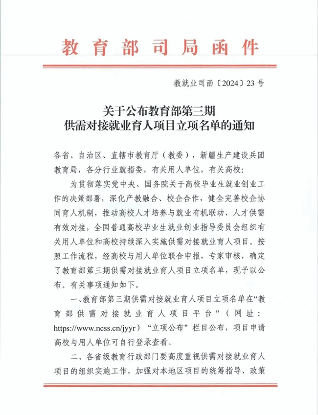 供需對接就業(yè)育人項(xiàng)目由教育部搭建平臺,面向各類企業(yè)、事業(yè)單位和行業(yè)協(xié)會征集項(xiàng)目指南,組織高校與發(fā)布項(xiàng)目指南的用人單位開展供需對接。用人單位與高校通過人才培養(yǎng)、就業(yè)實(shí)習(xí)等方面的合作,推動就業(yè)與培養(yǎng)有機(jī)聯(lián)動、人才供需有效對接,幫助用人單位培養(yǎng)和招聘更多實(shí)用型、復(fù)合型和緊缺型人才,促進(jìn)高校畢業(yè)生更加充分更高質(zhì)量就業(yè)。