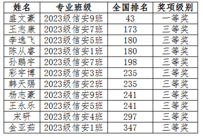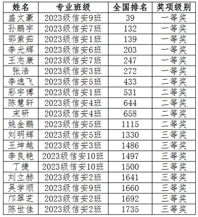 本屆賽事共設個人挑戰(zhàn)賽、分組對抗賽、無限擂臺賽和數據思維賽4個賽項。鄭州軟件職業(yè)技術學院學子參加了個人挑戰(zhàn)賽、無限擂臺賽兩個賽道,與13400余名全國本科、高職院校參賽選手同臺競技,在雙導師指導下,克服種種困難,團結一心,積極備賽,努力拼搏,斬獲30個獎項,其中2023級信息安全專業(yè)盛文豪同學表現優(yōu)異,個人挑戰(zhàn)賽和無線擂臺賽分別獲得全國第39、43名,兩個賽道在河南高職院校所有參賽選手中均排名第1,賽出了鄭軟學子的風采!