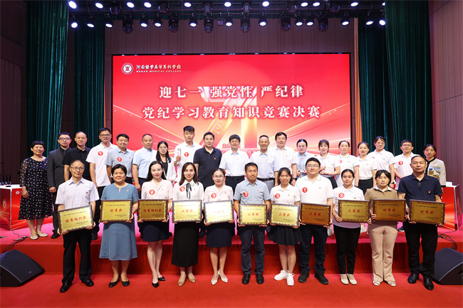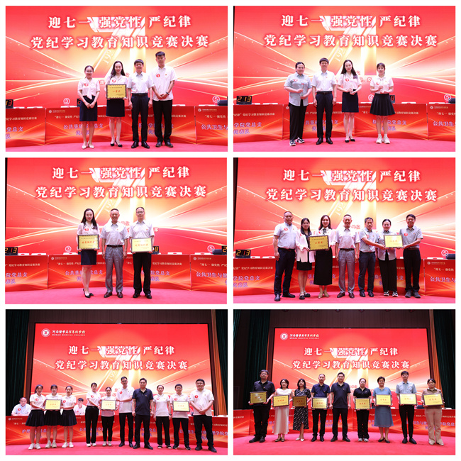 決賽以“迎七一強黨性嚴紀律”為主題,題目涵蓋《中國共產(chǎn)黨章程》、新修訂的《中國共產(chǎn)黨紀律處分條例》等多項黨紀黨規(guī)制度,進一步強化黨紀學習教育成果,增強貫徹執(zhí)行黨紀黨規(guī)的自覺性堅定性。決賽由必答題、搶答題、風險題、附加題等四個環(huán)節(jié)組成。競賽中,參賽選手們拼手速,比腦力,以良好的心理素質、扎實的理論素養(yǎng),沉著應對、團結配合,現(xiàn)場氣氛緊張熱烈,比分你追我趕,得分點處更是引起觀眾陣陣掌聲,精彩不斷。經(jīng)過激烈的比拼,公共基礎部黨總支代表隊獲得一等獎;臨床醫(yī)學院黨總支代表隊、護理學院黨總支代表隊獲得二等獎;教務教輔黨總支代表隊、公共衛(wèi)生與健康管理學院黨總支代表隊、檢驗學院黨總支代表隊獲得三等獎。思想政治教學研究部直屬黨支部代表隊、基礎醫(yī)學部直屬黨支部代表隊、機關黨總支代表隊、繼續(xù)教育部直屬黨支部代表隊、醫(yī)學技術學院黨總支代表隊、后勤服務黨總支代表隊、藥學院黨總支代表隊、離退休職工黨總支代表隊榮獲優(yōu)秀獎。公共基礎部黨總支代表隊和離退休職工黨總支代表隊榮獲優(yōu)秀組織獎。公共基礎部黨總支代表隊參賽選手王藝凝、臨床醫(yī)學院黨總支代表隊參賽選手賴亦斐、教務教輔黨總支代表隊參賽選手陳巧蓮獲得“最佳選手”榮譽稱號。