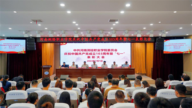 中新河南網7月3日電 為慶祝中國共產黨成立103周年,表彰先進、樹立典型,激勵和引導全校廣大黨員干部對標看齊、凝心聚力,進一步發(fā)揮黨員先鋒模范作用,7月1日上午,河南測繪職業(yè)學院在多功能報告廳舉行慶祝中國共產黨成立103周年暨“七一”表彰大會。全體校領導、受表彰的優(yōu)秀共產黨員、優(yōu)秀黨務工作者及黨組織書記等參加了表彰大會,校黨委書記張樹嶺作總結講話。會議由校黨委副書記、校長張凌杰主持。