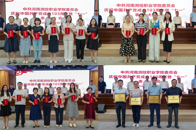 校黨委副書記、工會主席李駿元宣讀了《中共河南測繪職業(yè)學院委員會關于表彰2024年優(yōu)秀共產黨員、優(yōu)秀黨務工作者、先進基層黨組織的決定》。各位校領導為優(yōu)秀共產黨員、優(yōu)秀黨務工作者和先進基層黨組織頒發(fā)了榮譽證書、獎牌。